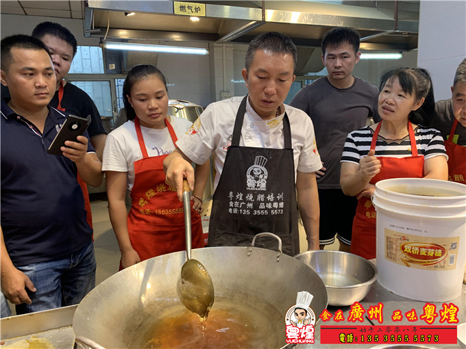 师傅教学员如何调秘制叉烧蜜汁